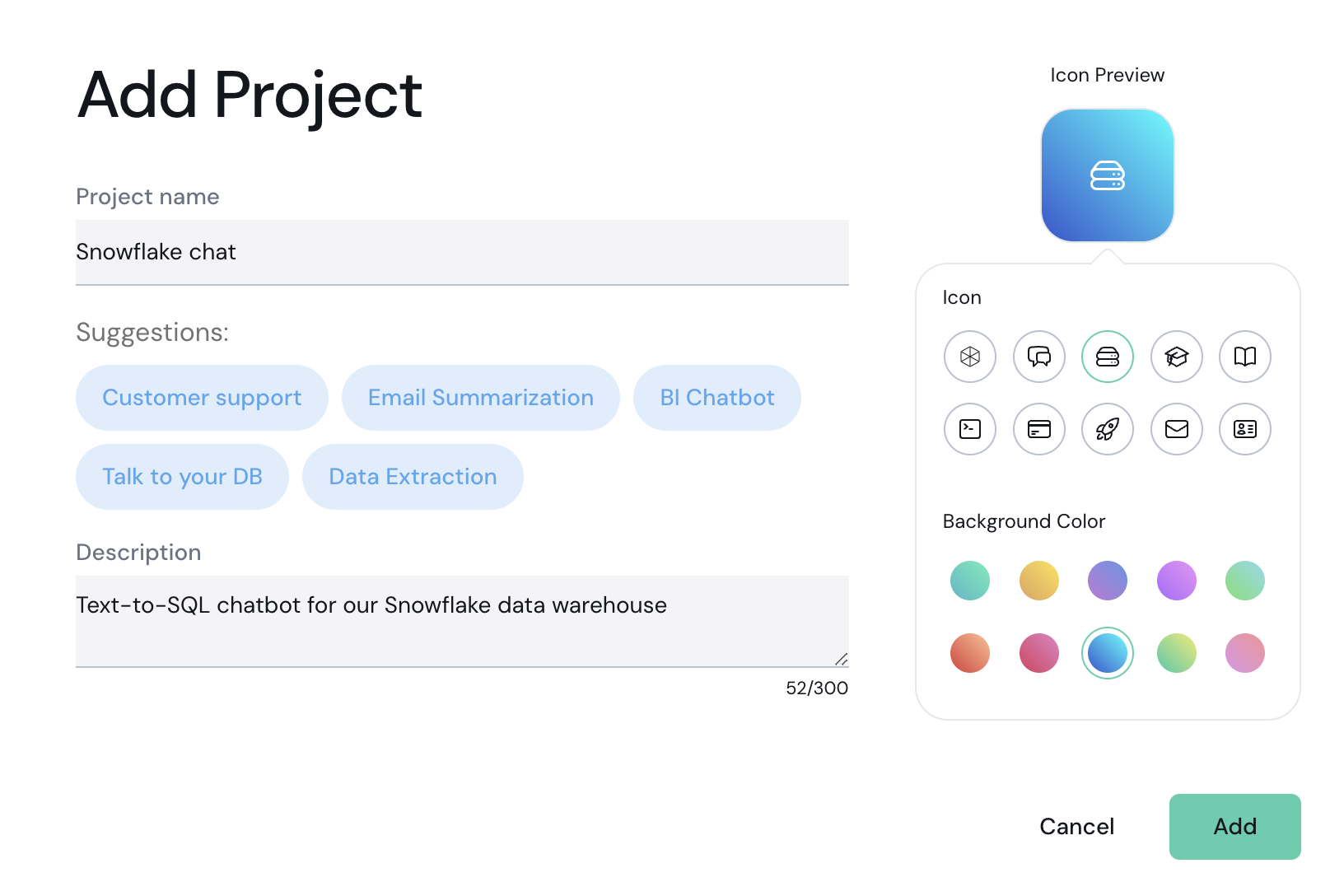 - Optionally, choose an icon and a color for your project.