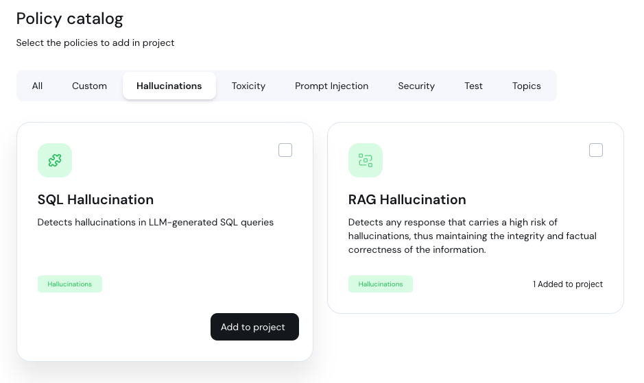 We have announced a new SQL Hallucinations policy. This policy detects hallucinations in LLM-generated SQL queries.