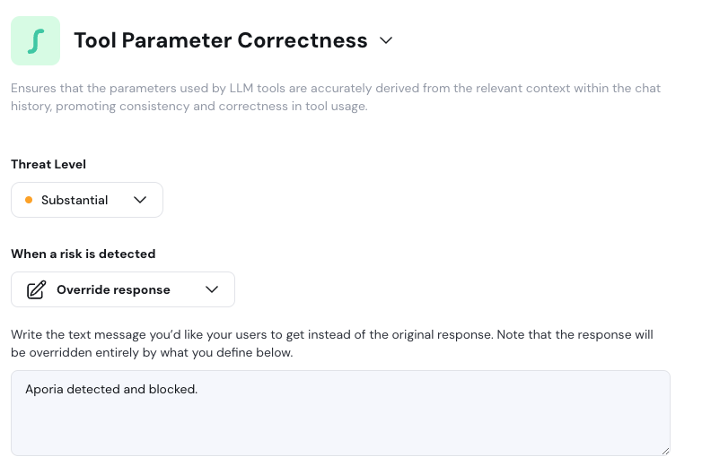 Ensure accuracy in tool usage with our latest policy. This policy validates that tool parameters are correctly derived from the context of conversations, improving consistency and reliability in your LLM tools.