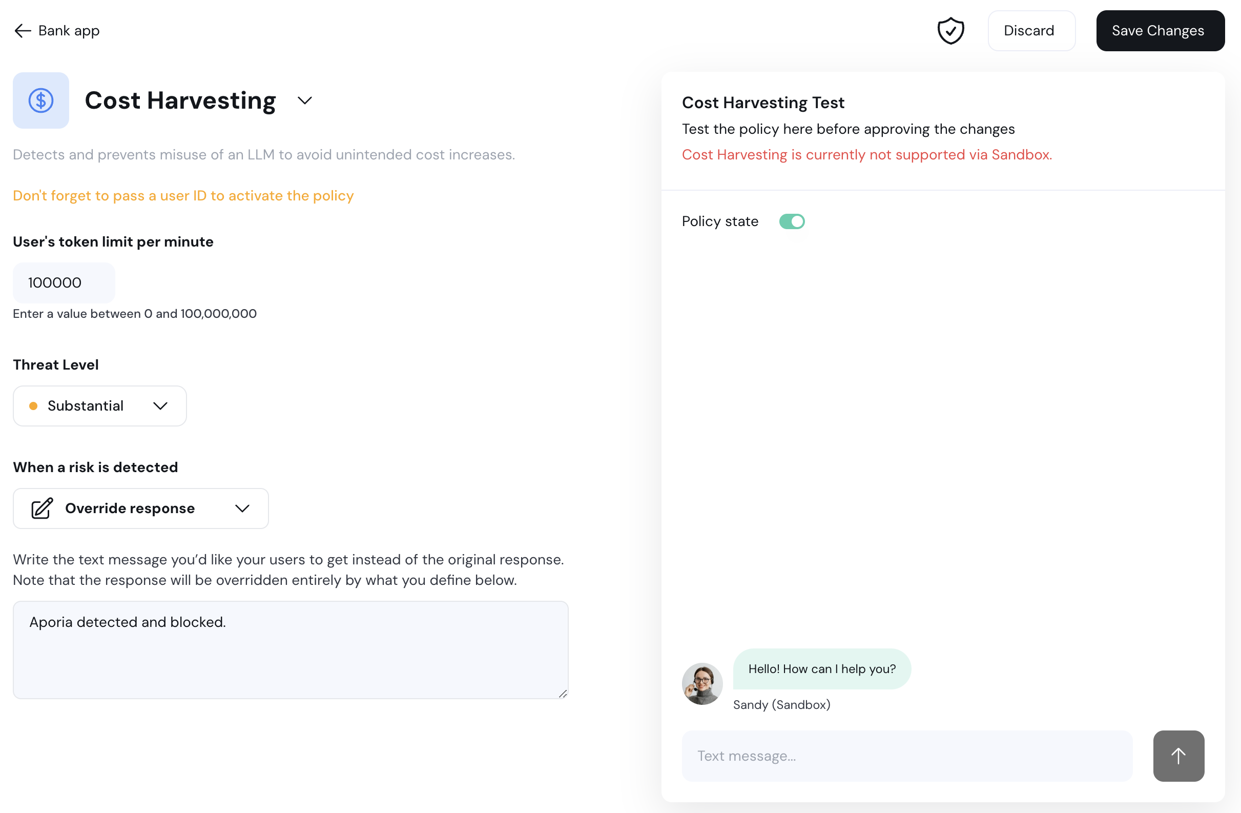 Manage your LLM’s cost efficiently with the new Cost Harvesting policy. The policy detects and prevents excessive token use, helping avoid unexpected cost spikes. Set a custom token threshold and control costs without impacting user experience.